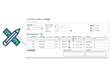Allow your team members to Create detailed purchase orders for Services and/or Products. Lightyear recognises your products and intelligently auto populates all the details from your suppliers item's catalogue.