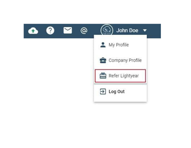 - Referral links will be generated by Lightyear from within the Lightyear Application under the ‘Refer Lightyear’ link.